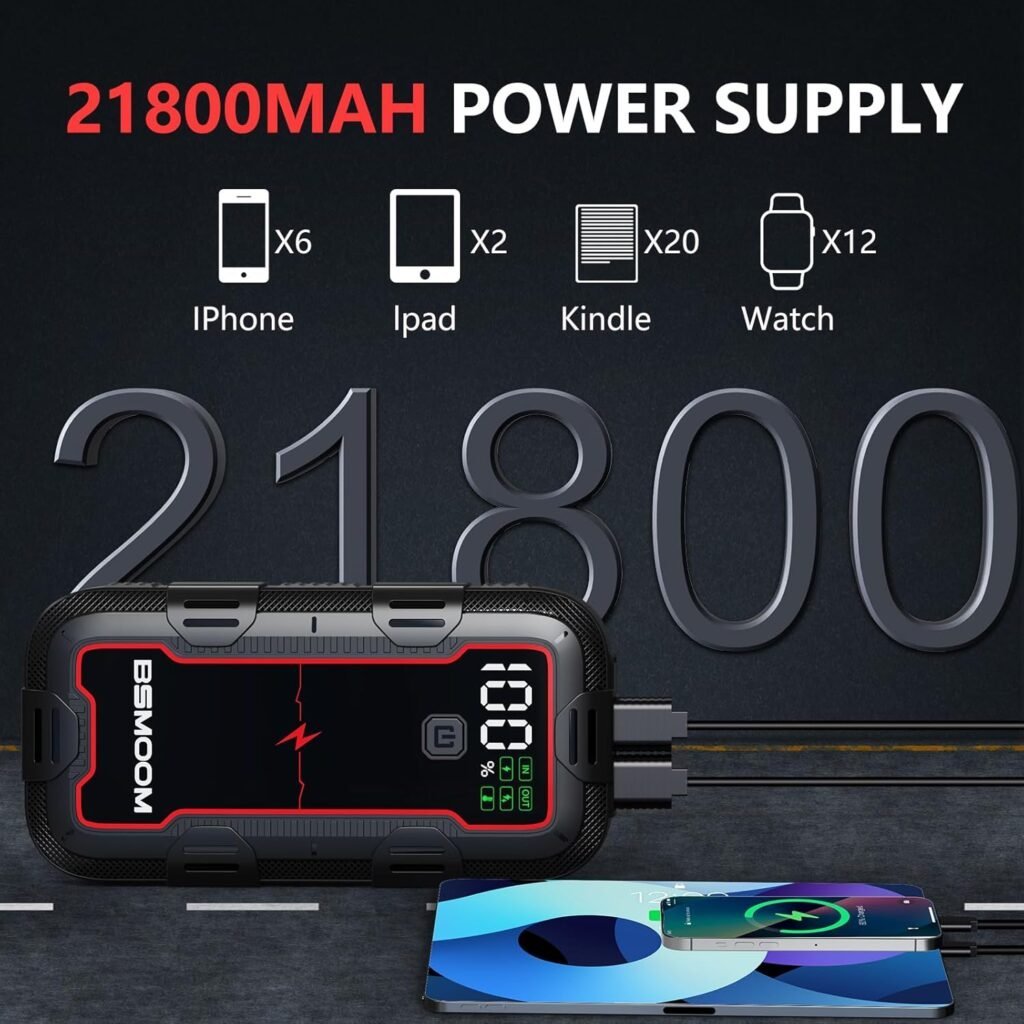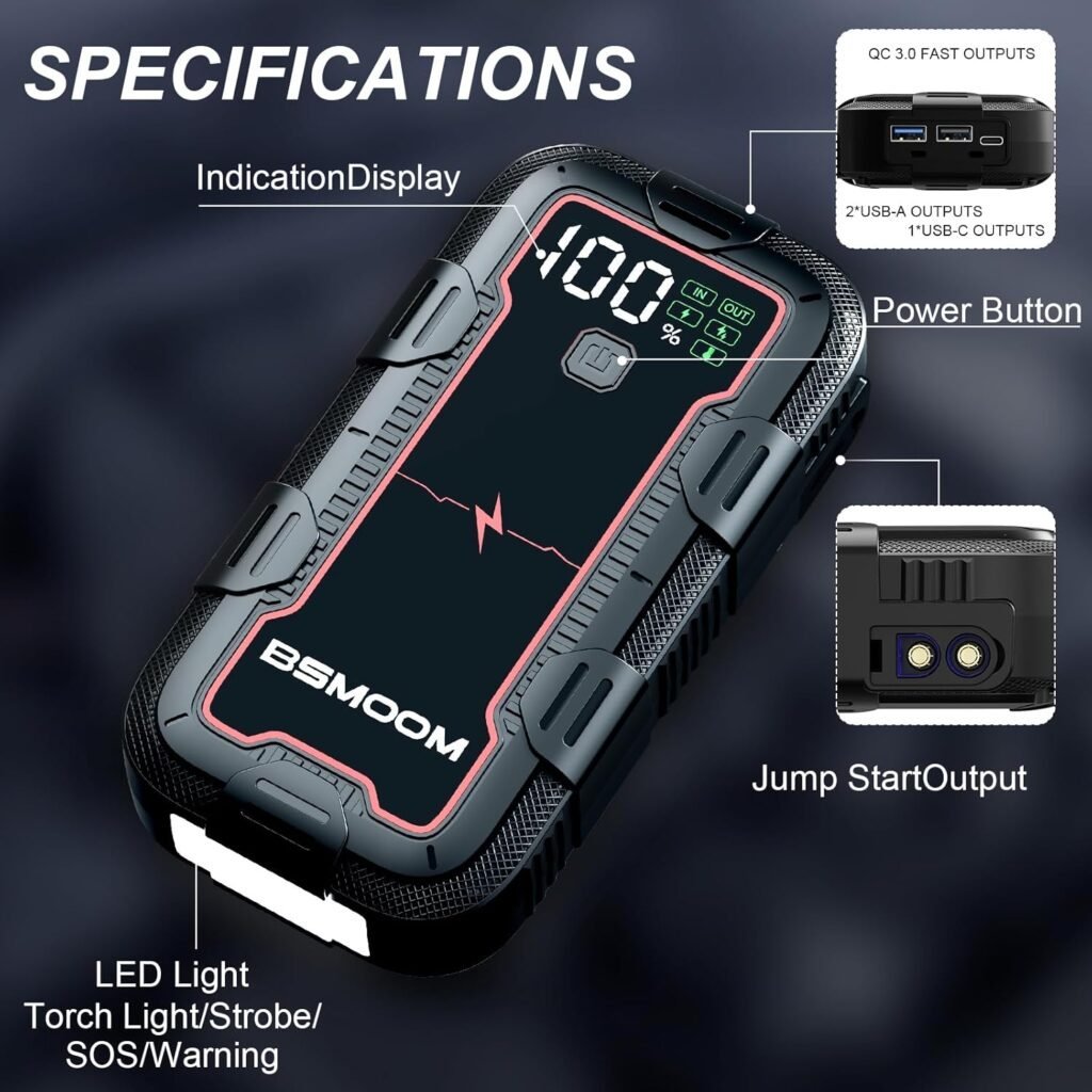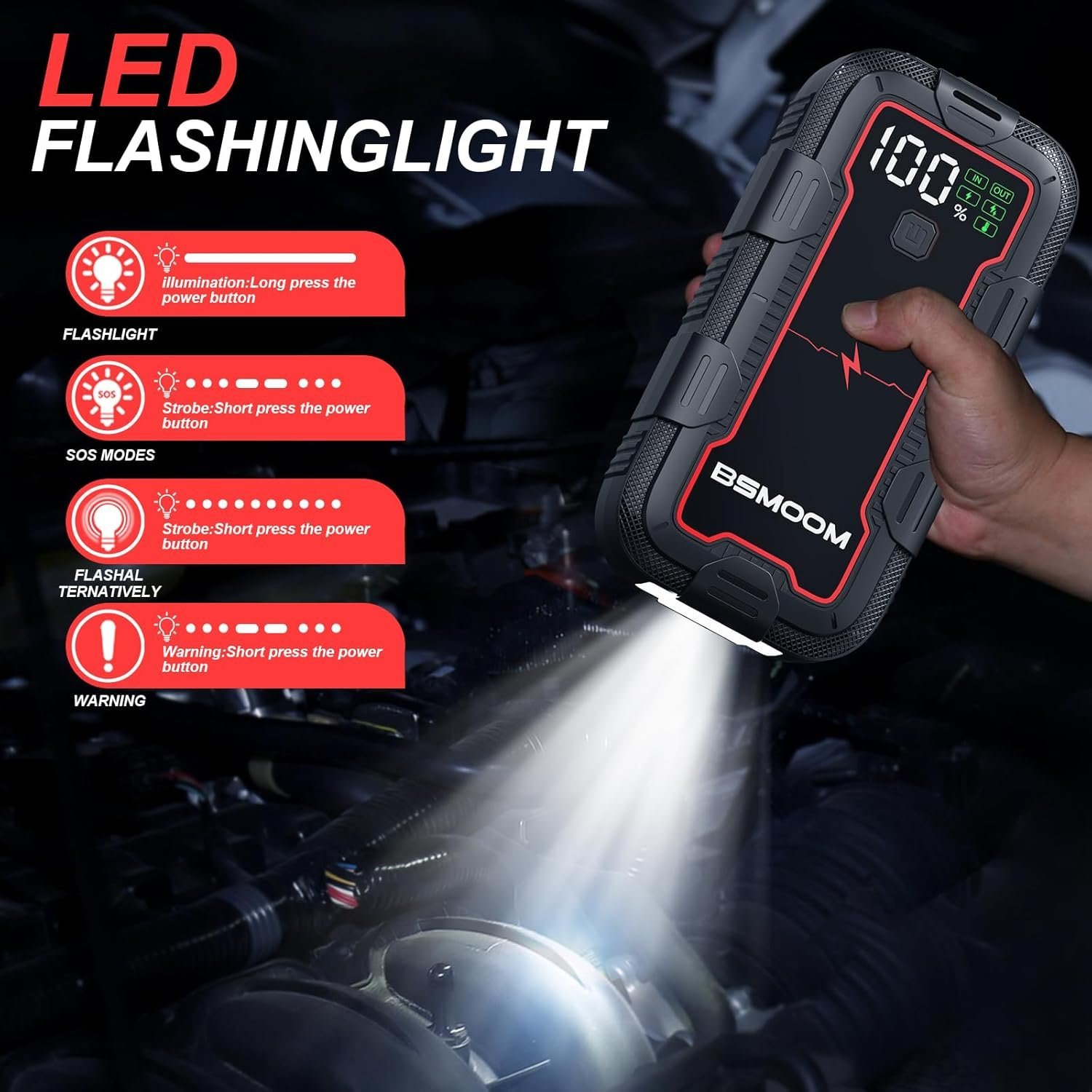 El arrancador de bater¨ªa BSMOOM de 12V es un salvavidas. Con su pico de 6000A, arranc¨® mi coche sin problemas incluso con la bater¨ªa completamente descargada.