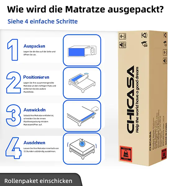 • Wenn du dich auf die Chicasa 2.Generation PRO legst, umhüllt dich angenehme Weichheit- für pure Entspannung und ein behagliches Einschlafen.